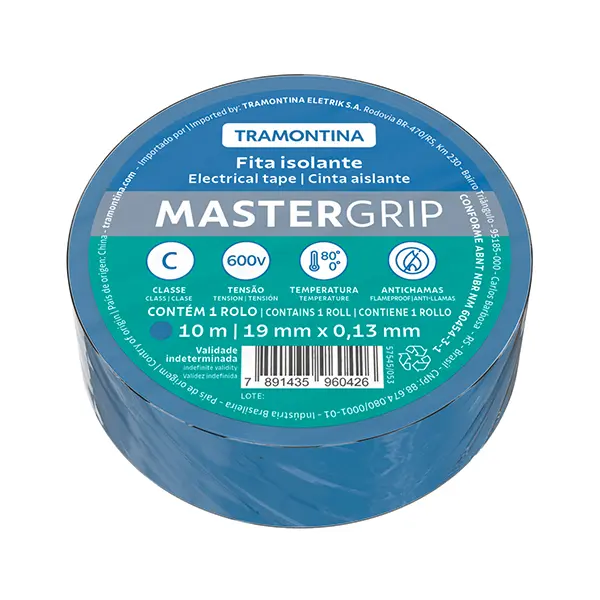 Con la cinta aislante clase C 0,13 x 19 mm Tramontina azul 10 m, además de tener una conexión eléctrica segura y de buena calidad, podrás identificar y señalar el conductor eléctrico. Su fabricación con material antillama de excelente elasticidad y resistencia proporciona el aislamiento perfecto de los cables, sin riesgo de que ocurran descargas eléctricas. Es muy fácil de aplicar e ideal para una buena conexión eléctrica.